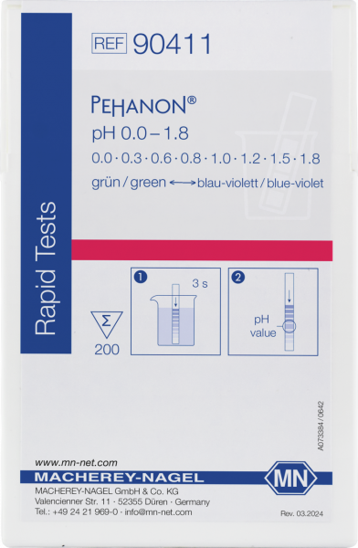 Il prodotto Pehanon è costituito da una serie di cartine indicatrici con zona sensibile e scala colorata combinate su una singola striscia.