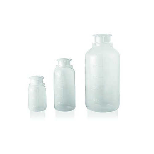 Bottiglie In polietilene bassa densità (LDPE), graduate, con sottotappo.