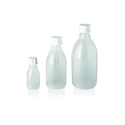 Bottiglie in polipropilene (PP), autoclavabili e idonee al contatto alimentare (Direttiva CE 10/2011).