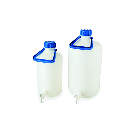 Bottiglioni a collo stretto con rubinetto, in polietilene alta densità (HDPE).