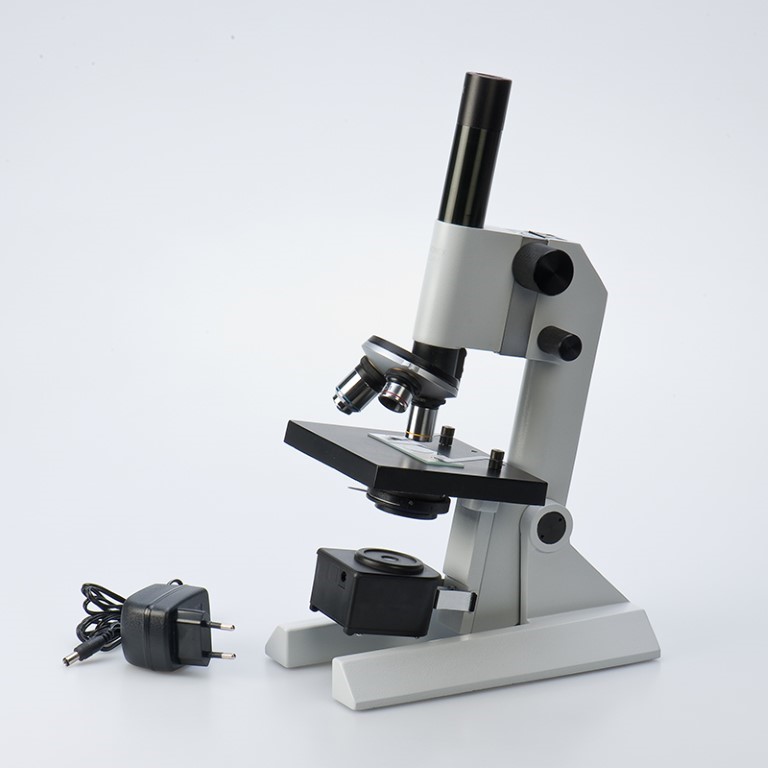 Robusto microscopio per studenti con stativo inclinabile interamente inclinabile, illuminazione a specchio, portatile e senza fili